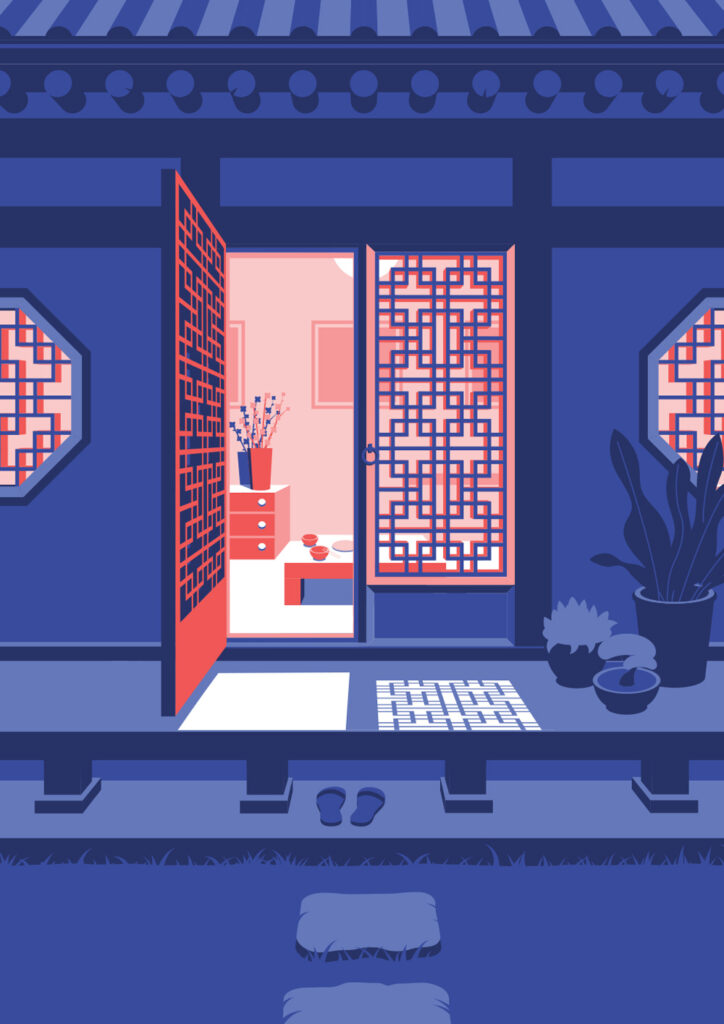 Hanok houses are traditional Korean houses. These illustrations were made to see if I can use the same colours for the day and night scene.